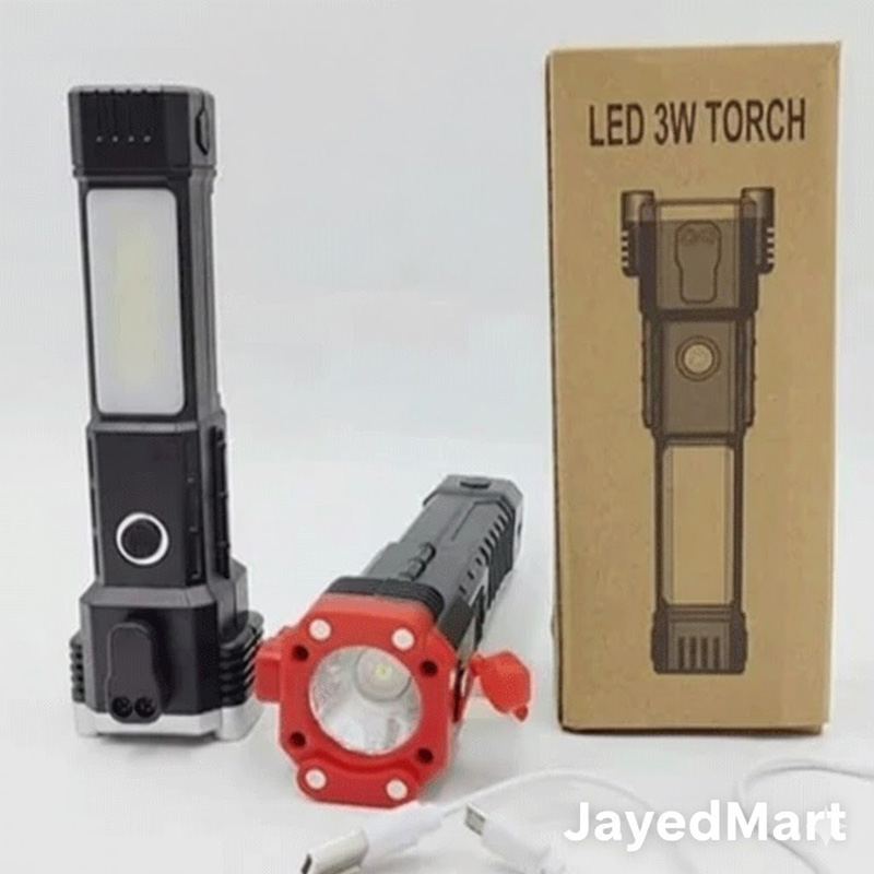 সুপার পাওয়ার LED রিচার্জেবল টর্চ লাইট উইথ পাওয়ার ব্যাংক । এই এলইডি লাইট টি তিনটা মুডে আলো দিবে। ইমারজেন্সি প্রয়োজনে সিট বেল্ট কাটতে পারবেন এছাড়াও যে কোন ফিতা দড়ি কাটতে পারবেন ।